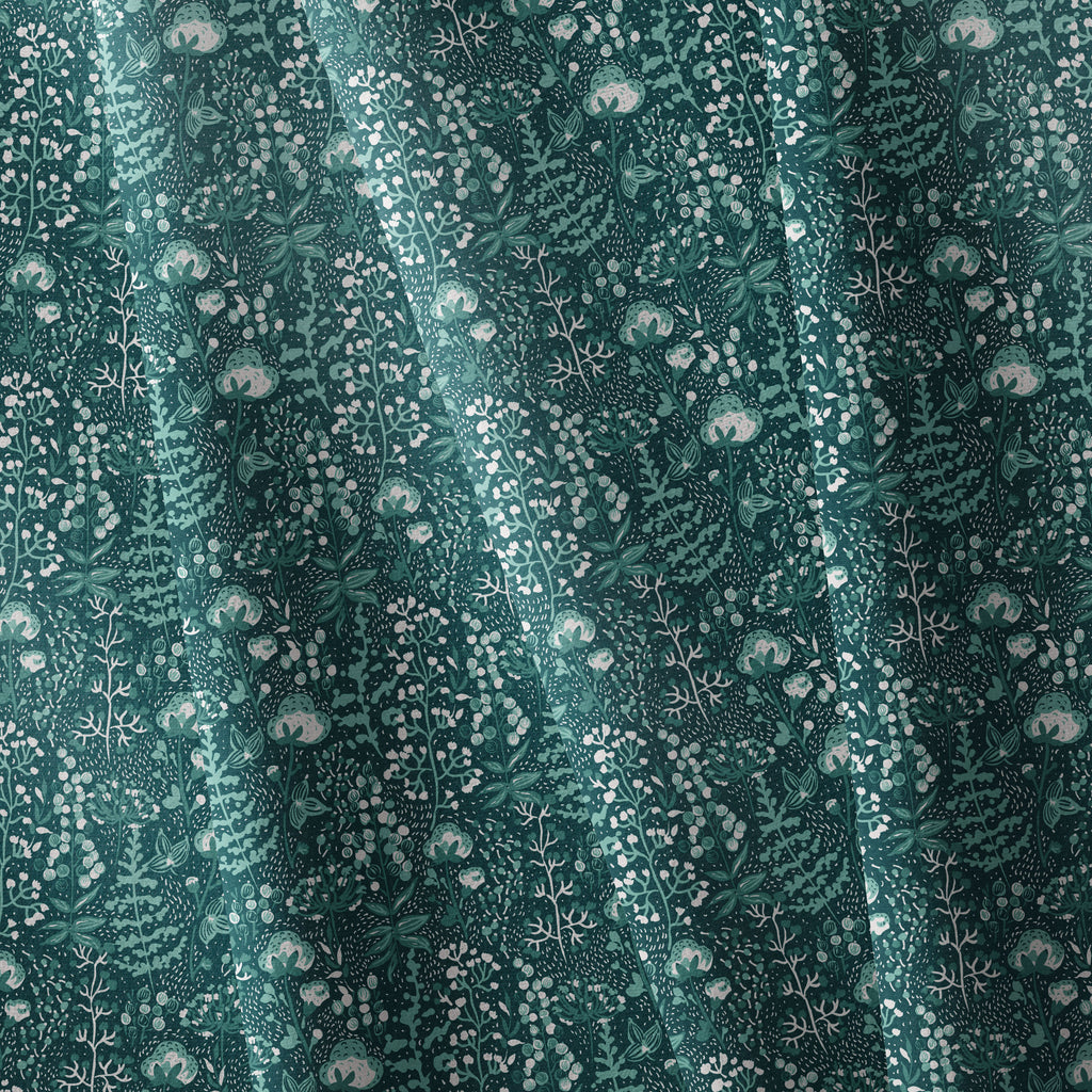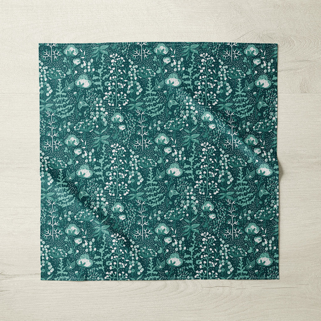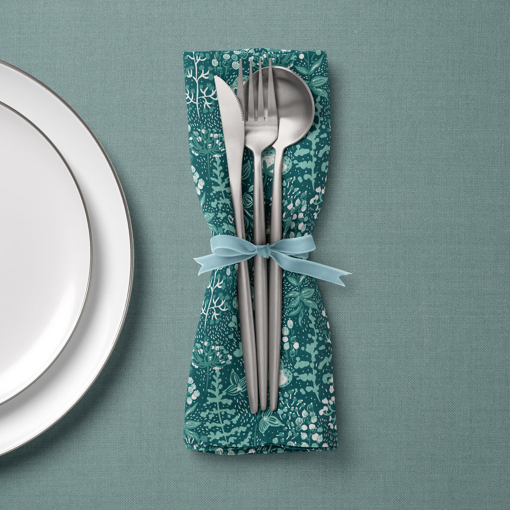 Cotton Pampas Teal Botanical Fabric Napkin - Cloth Coasters, Dinner Napkins - Set or Single