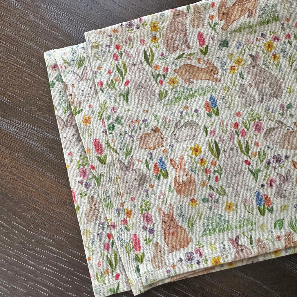 Spring Bunnies Fabric Napkin - Eco Friendly Cocktail and Dinner Napkins